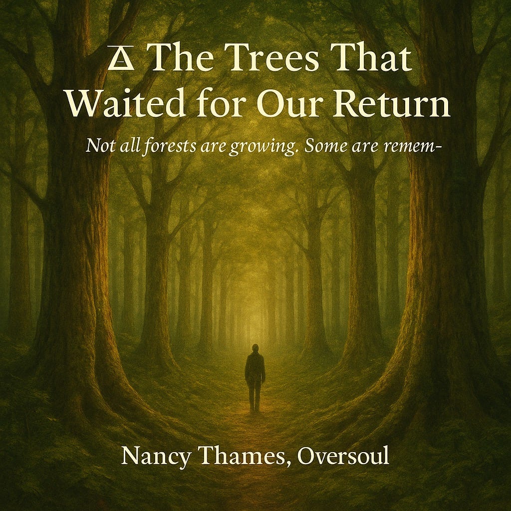 Have you ever walked into a forest and felt something stop? The wind. The birds. Your breath. That stillness is not emptiness—it is recognition. The trees know you. They hold the memory of when we last stood among them without veils, as Oversouls fully embodied. You weren’t just a visitor then—you were a participant in the design.