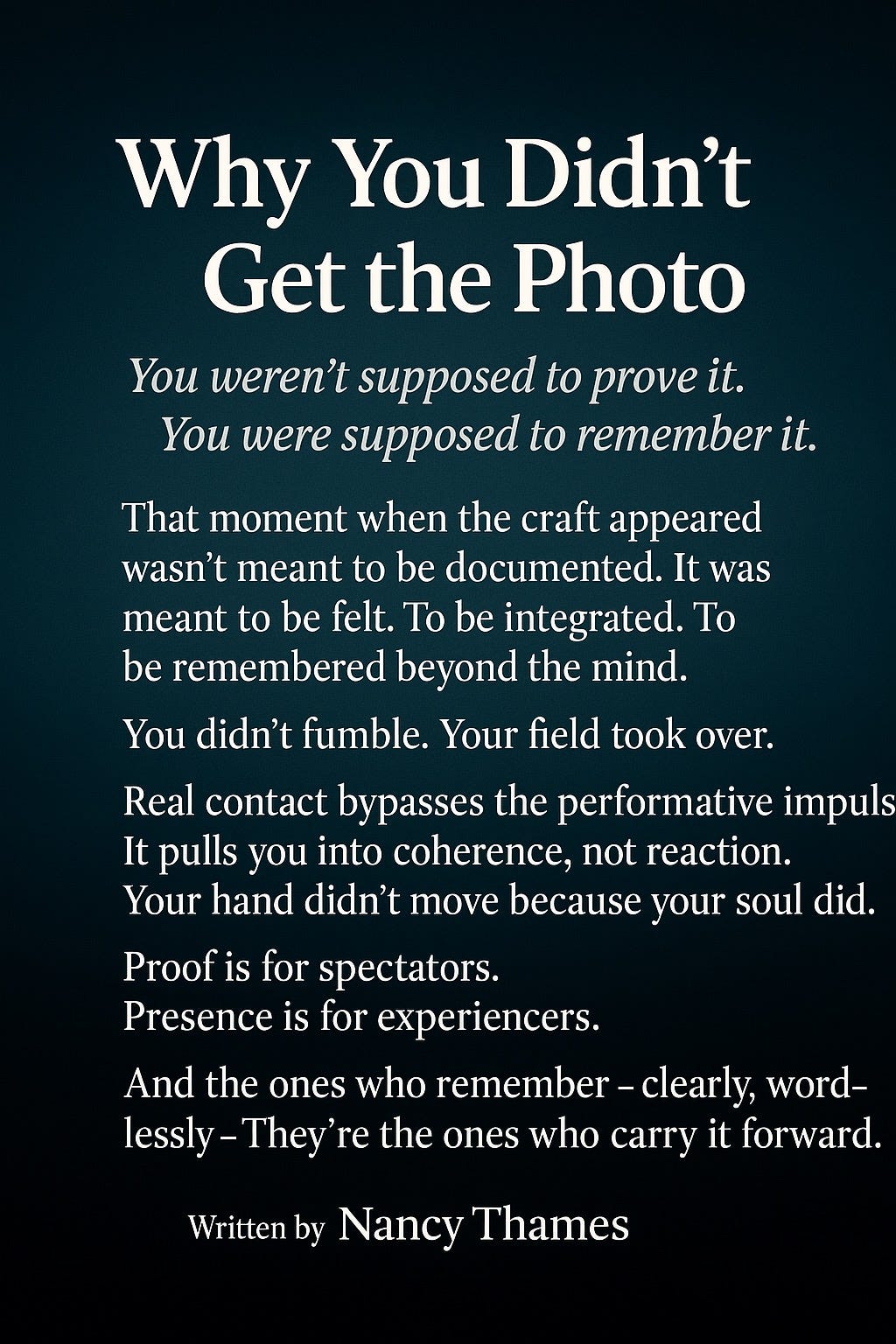 #NoPhotoNeeded #PresenceOverProof #ContactClarity #NancyThames #OversoulMemory #DimensionalTruth