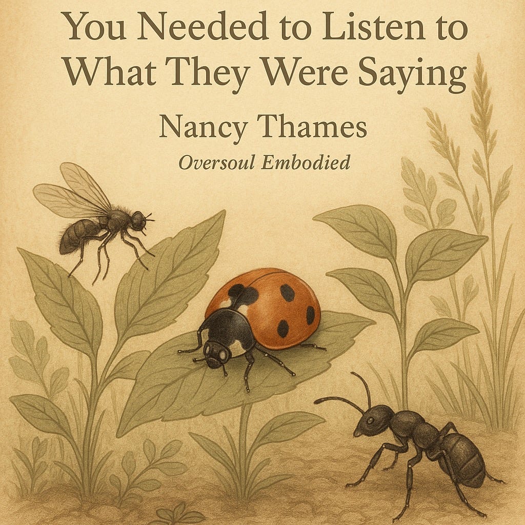Insect signal carriers, Oversoul field engineers, resonance species, mimic blindness to function, sacred ecological roles, pattern-based intelligence, interspecies communication, field tuning through movement